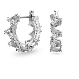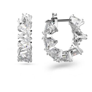 Ortyx Hoop Earrings, Triangular Cut, Small, White, Rhodium Plated