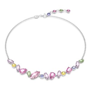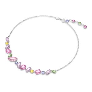 Gem Necklace, Mixed Sizes, Multicolor, Rhodium Plated