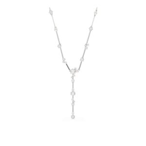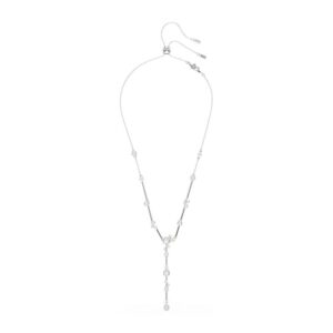 Constella Y-Necklace, Crystal Pearl, Round Cuts, White, Rhodium Plated