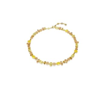 Gem Tennis Necklace, Mixed Sizes, Yellow, Gold-Tone Plated