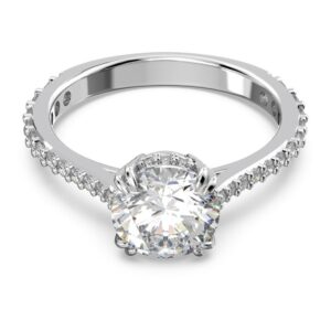 Una Angelic Cocktail Ring, Round Cut, Pavé, White, Rhodium Plating