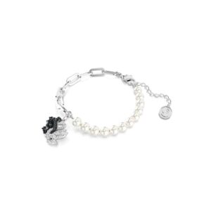 Pure and timeless sophistication. This rhodium-plated bracelet features a row of round clear crystals, each framed with the sparkle of clear crystal pavé. It coordinates beautifully with other pieces in the Angelic family.