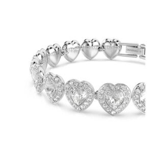 Love shines bright on this Swarovski bracelet, which takes romantic extravagance to the next level. The rhodium-plated design features a full circle of heart-shaped crystals, each surrounded by a sparkling halo of clear pavé. Wear this bracelet with other coordinating accessories to create your own expressive combinations.