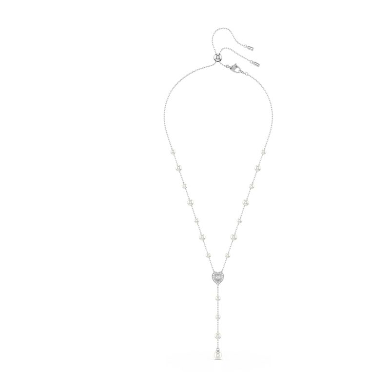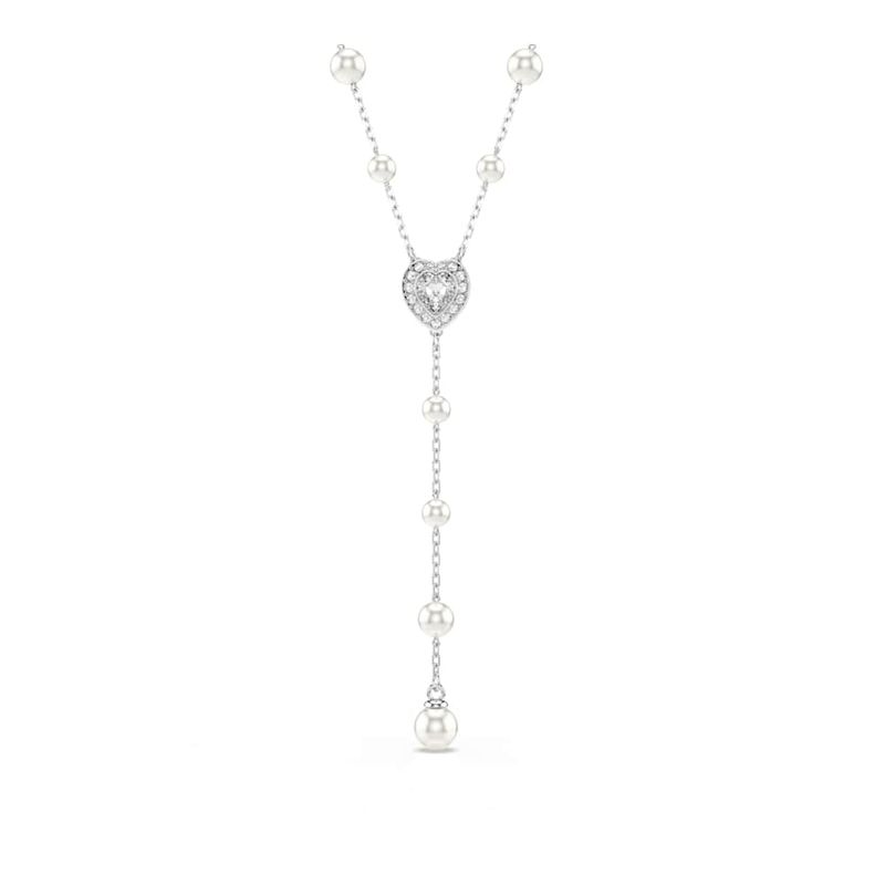 Crafted with delicacy and timeless beauty, this T-shaped necklace perfectly embodies Swarovski’s playful extravagance. The rhodium-plated design features a delicate chain adorned with Swarovski Crystal Pearls. At its center, a heart motif is surrounded by sparkling pavé, while the dangling strand provides a finishing touch of sophistication. Combine this necklace with other coordinating accessories to create your own radiant combinations.