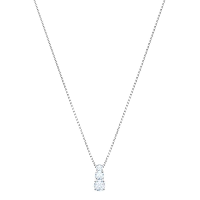 Past, present, and future converge in the captivating Attract Trilogy pendant. Inspired by the concept of eternal love, this romantic design radiates timeless elegance. Three clear crystals hang majestically from a rhodium-plated chain. A classic piece full of emotion, it’s perfect as a gift for a loved one. A matching pair of earrings and ring are available.