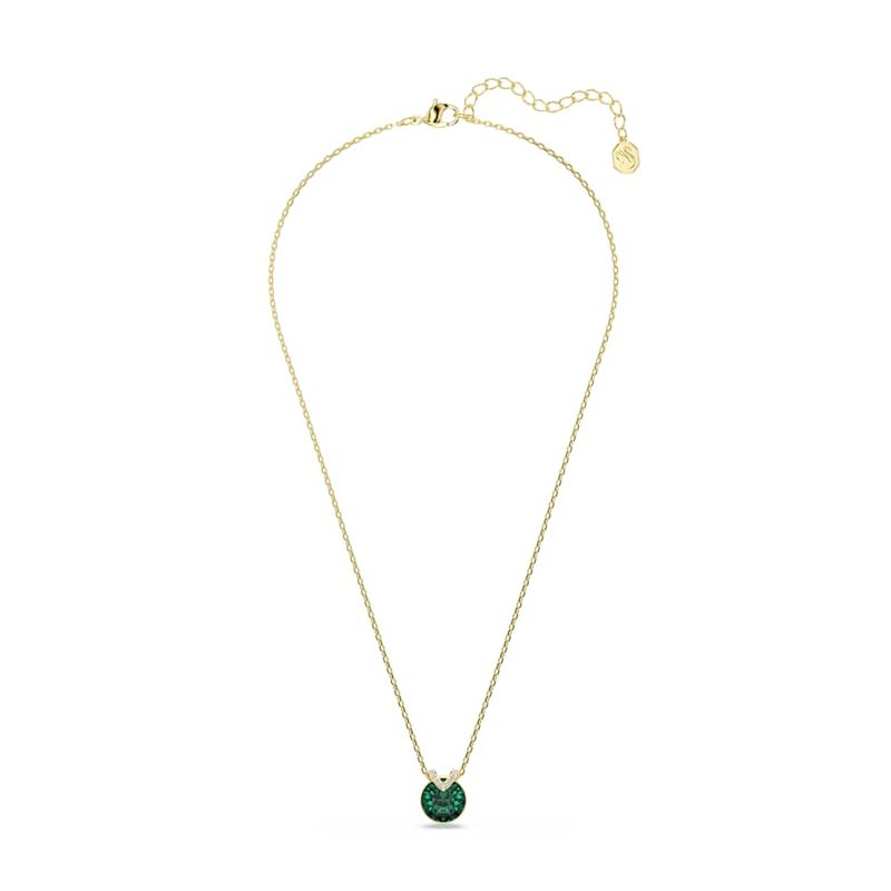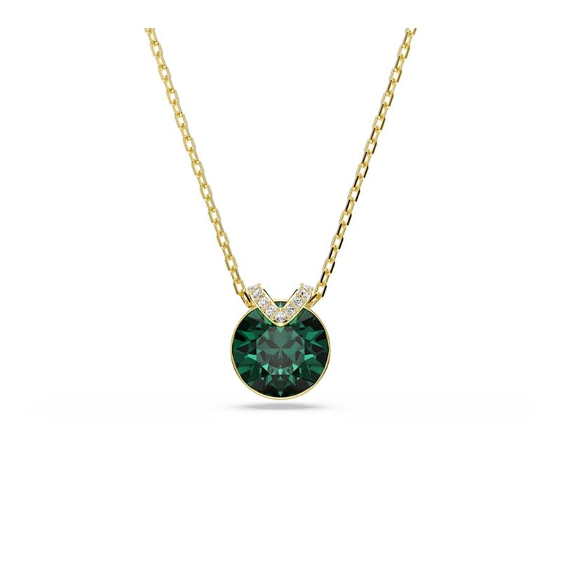 Bella V Pendant, Round Cut, Green, Gold Tone Plated