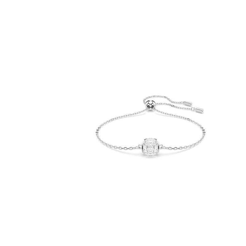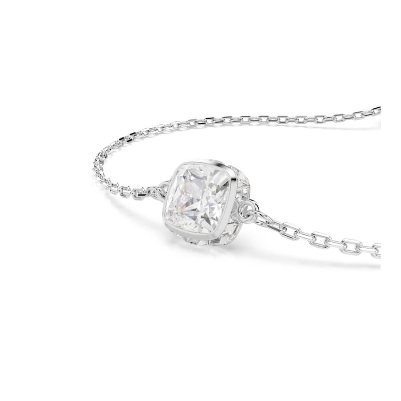 This meaningful bracelet is inspired by the April birthstone. Suspended from a delicate chain, this rhodium-plated accessory features a single, clear, square-cut stone, representing strength, clarity, and inner power. Perfect as a magical birthday gift or to celebrate a significant date.