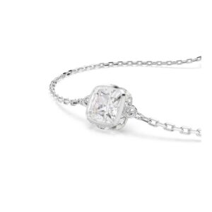 Birthstone Bracelet, Square Cut, April, White, Rhodium Plated