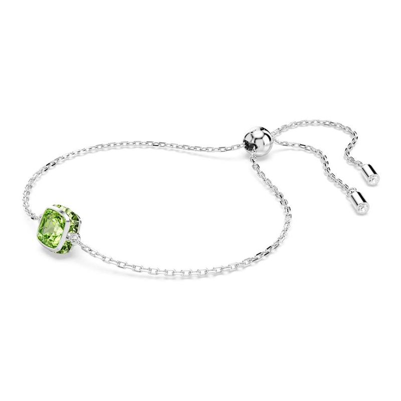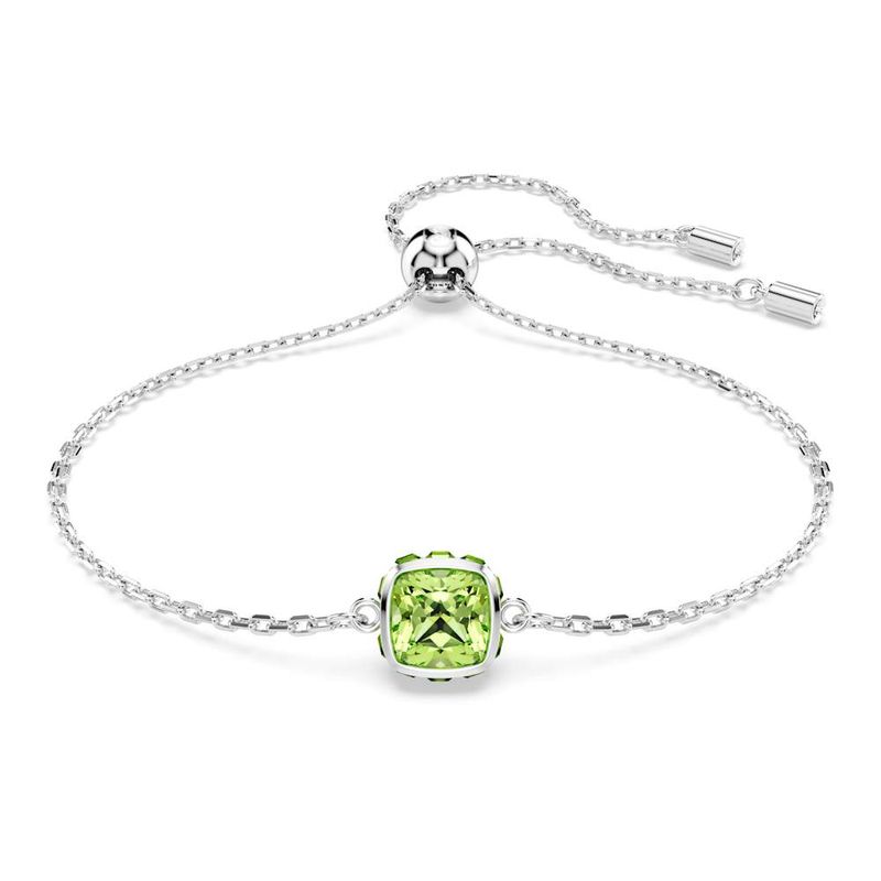 Birthstone Bracelet, Square Cut, August, Green, Rhodium Plated