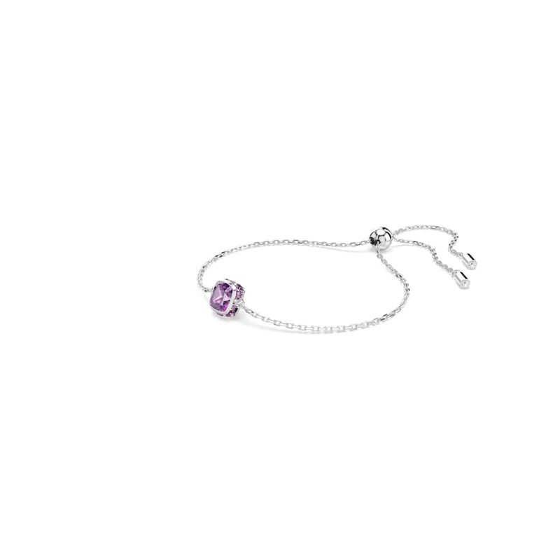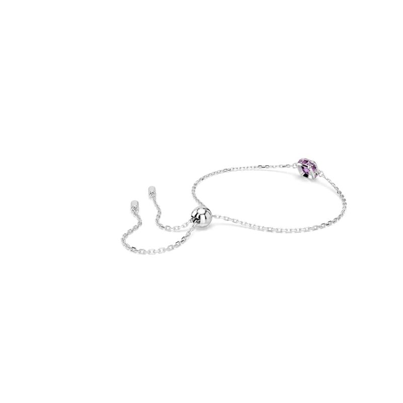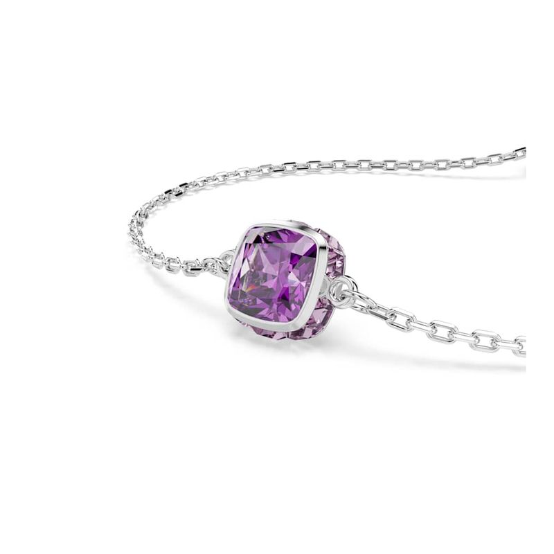 Birthstone Bracelet, Square Cut, February, Purple, Rhodium Plated