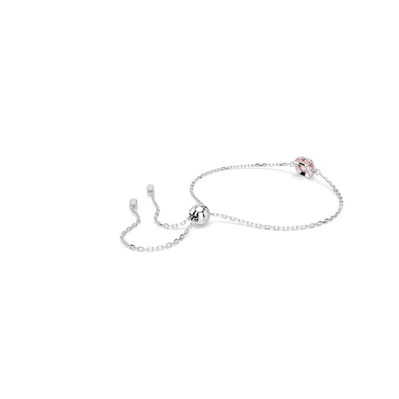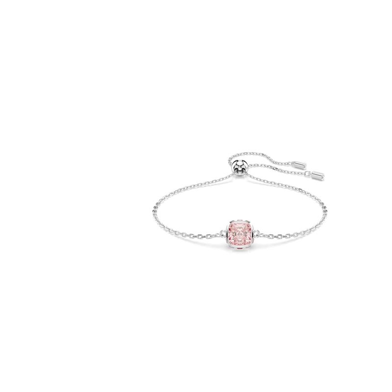 Birthstone Bracelet, Square Cut, June, Pink, Rhodium Plated