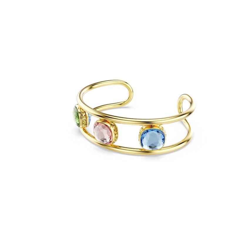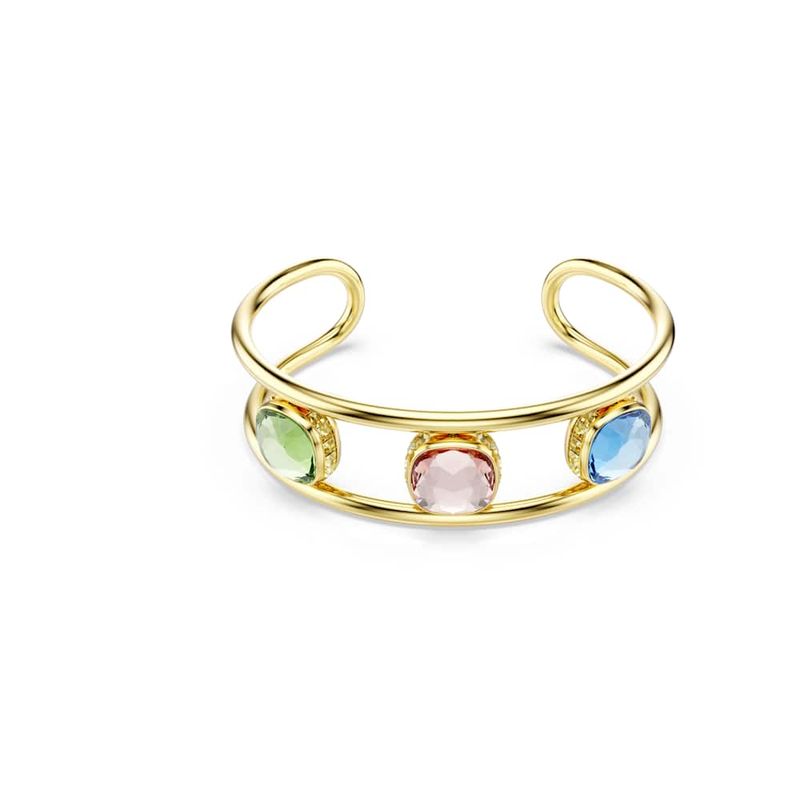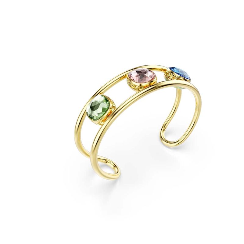 This playful Chroma Twist open bangle is a fun example of Swarovski’s expertise. Offering endless styling options, the gold-tone plated band features a row of green Swarovski ReCreated™ crystals on one side and blue Swarovski ReCreated™ crystals and vibrant pink crystals on the other. Simply flip it to suit your mood or outfit. A versatile option to wear alongside other reversible pieces from the same collection. Chroma Twist accessories contain at least 50% Swarovski ReCreated™ crystals, and is our first collection designed with circularity in mind.