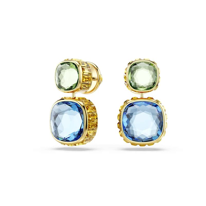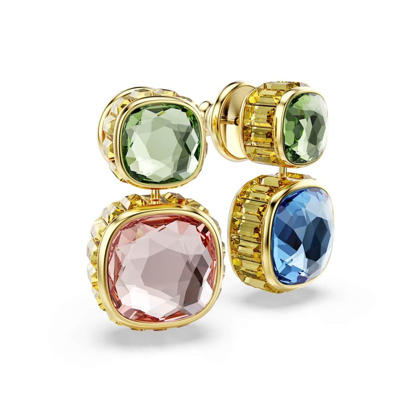 Chroma Earrings, Cushion Cut, Multicoloured, Gold Tone Plated