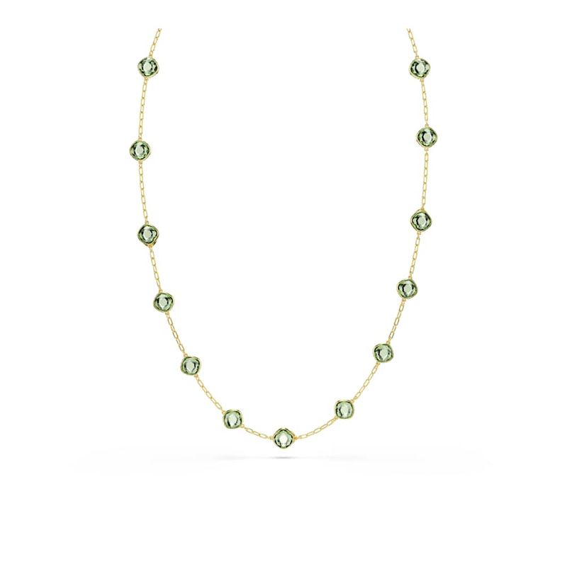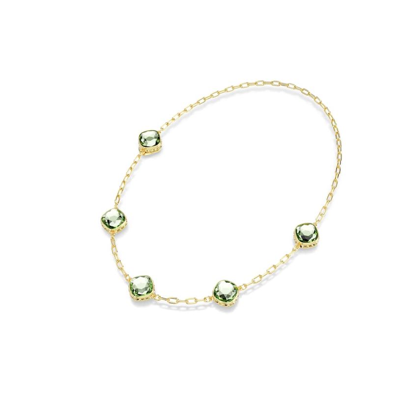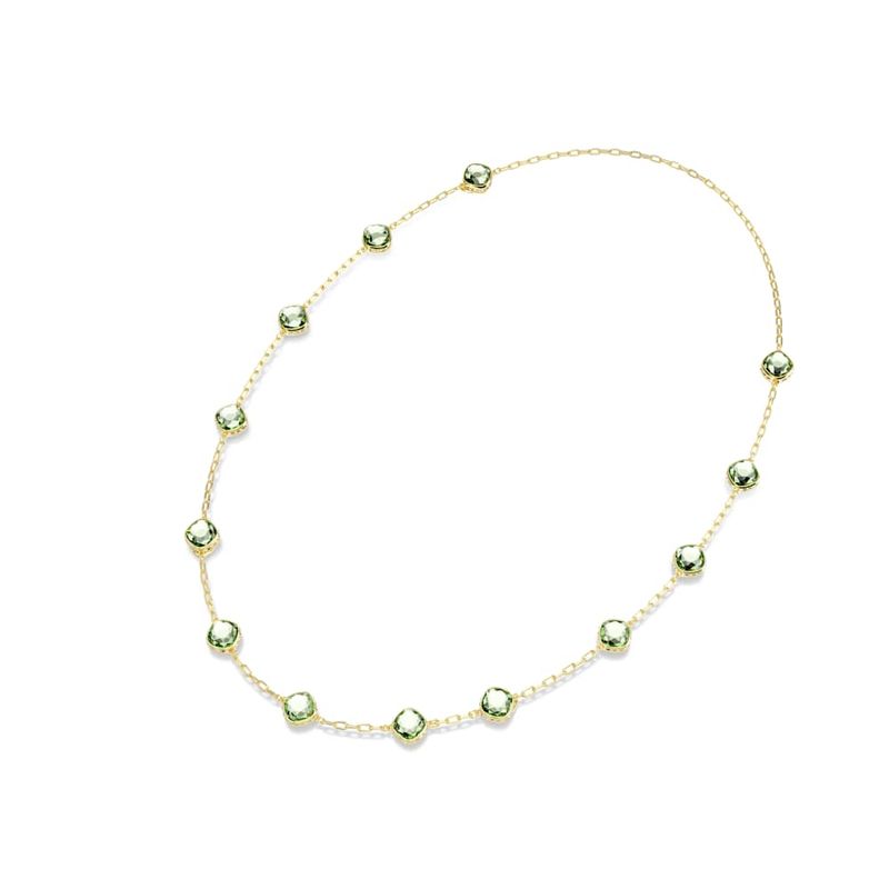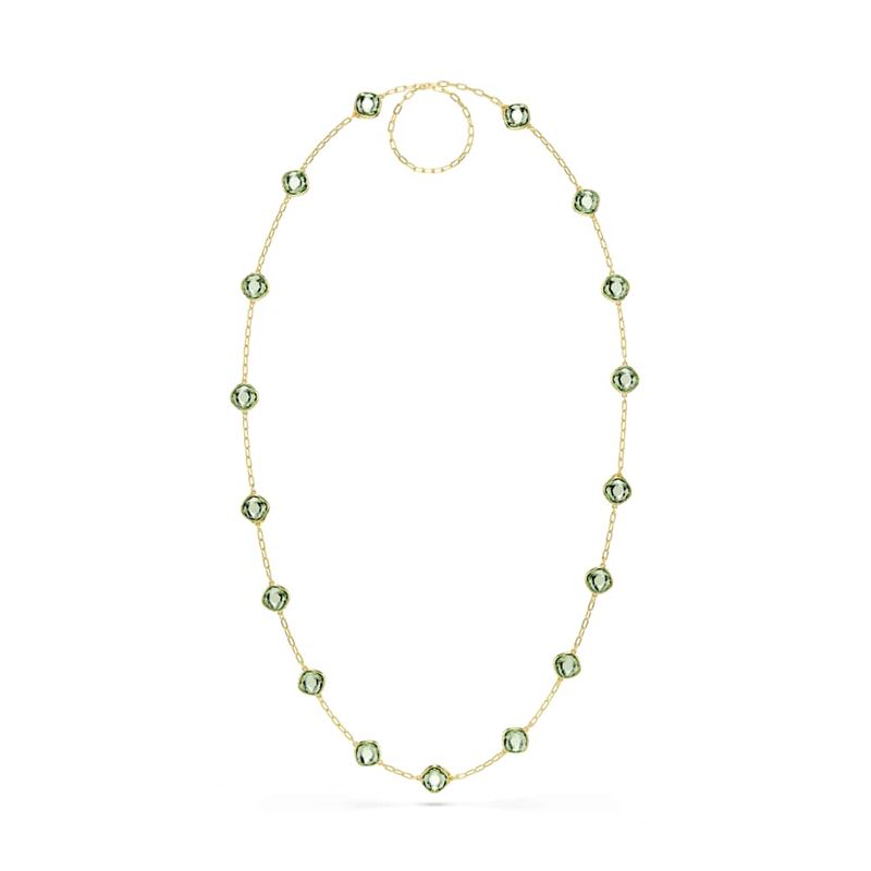 Chroma Necklace, Octagonal cut, Green, Gold tone plating