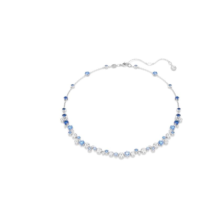 Constella Necklace, Mixed Sizes, Blue, Rhodium Plated