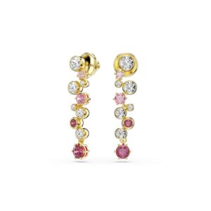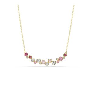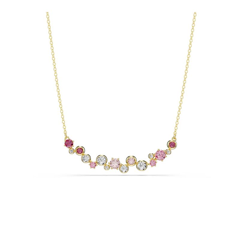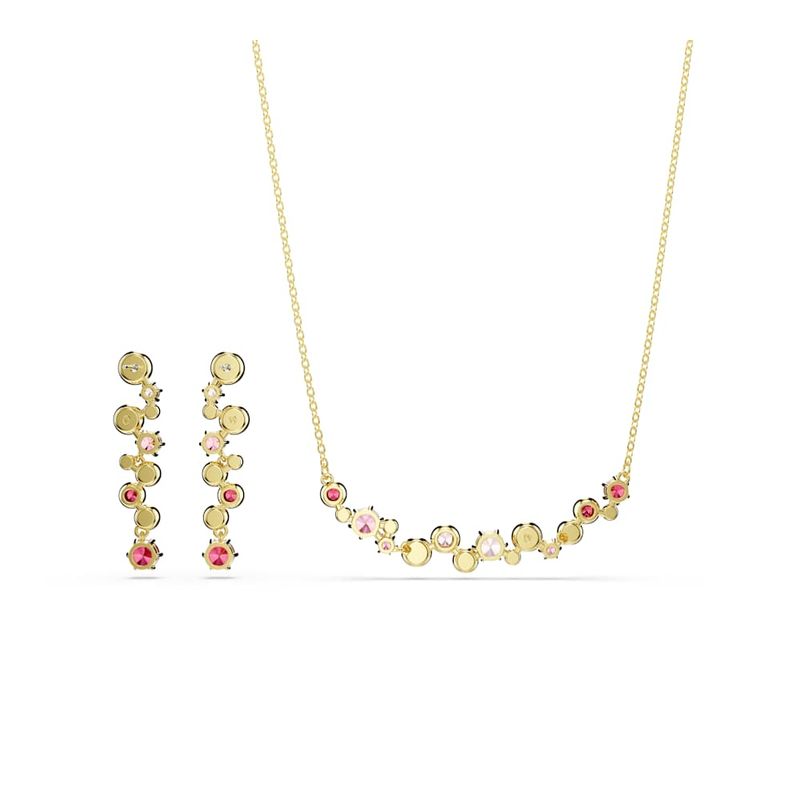 This gold-tone plated Constella set was created with the joy of color in mind. Comprised of a necklace and a pair of earrings, each piece is adorned with clear crystals and pink and red Swarovski Zirconia in various sizes and shades, presented in claw or bezel settings. The necklace also includes a sliding clasp for a versatile fit. It’s a warm and vibrant set to enhance any outfit.