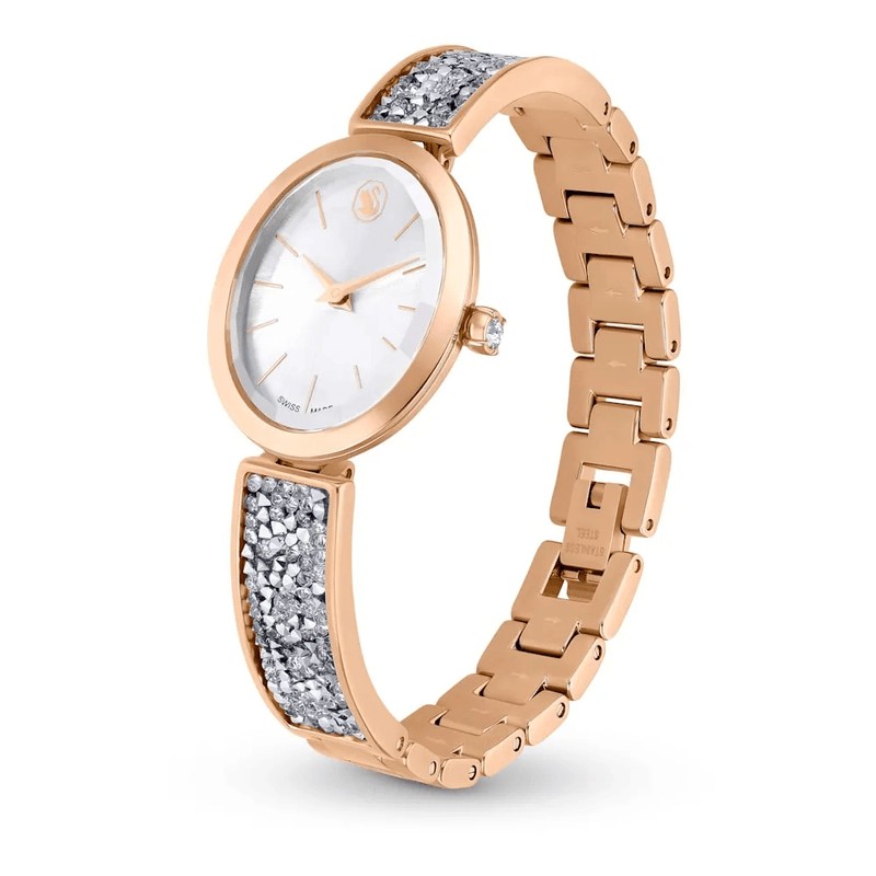 Crystal Rock Oval Watch, Swiss Made, Metal Bracelet, Rose Gold Tone, Rose Gold Tone Finish
