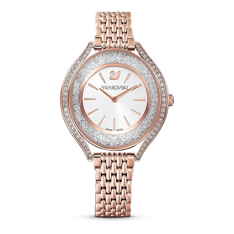 Crystalline Aura watch, metal bracelet, rose gold tone, rose gold tone PVD