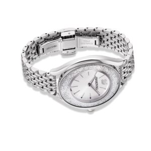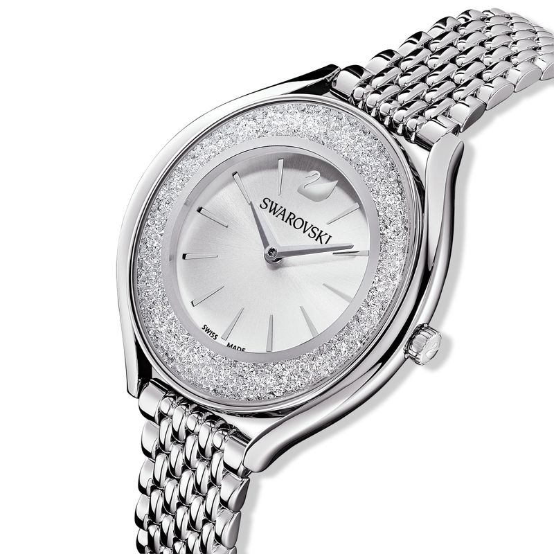 Incredibly elegant: This Swarovski watch from our Crystalline Aura Collection skillfully combines form and function. Over 1,300 crystals on the stainless steel case create a brilliant, shimmering effect. A stainless steel bracelet and a silver-white dial with the Swarovski swan at 12 o’clock complete the sophisticated design. This Swiss Made watch is water-resistant to 50 m.