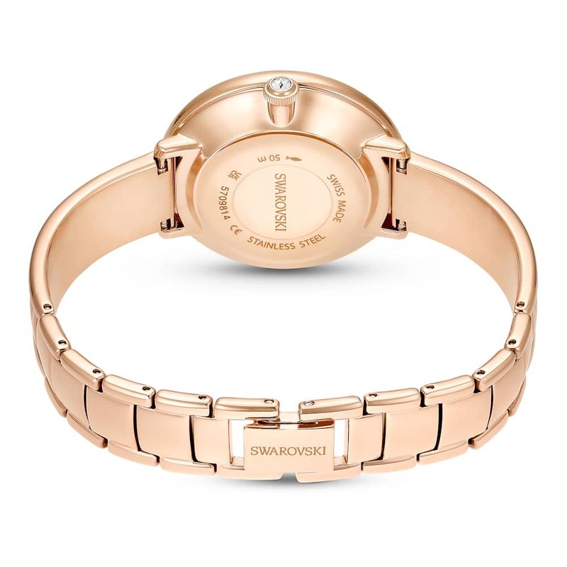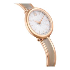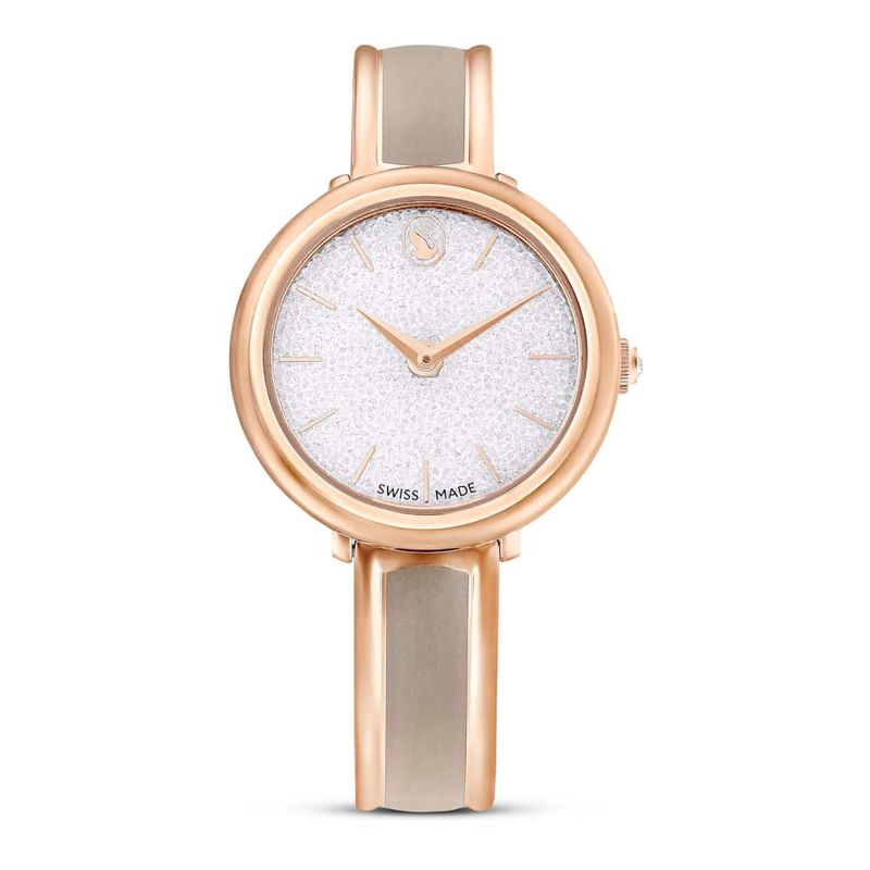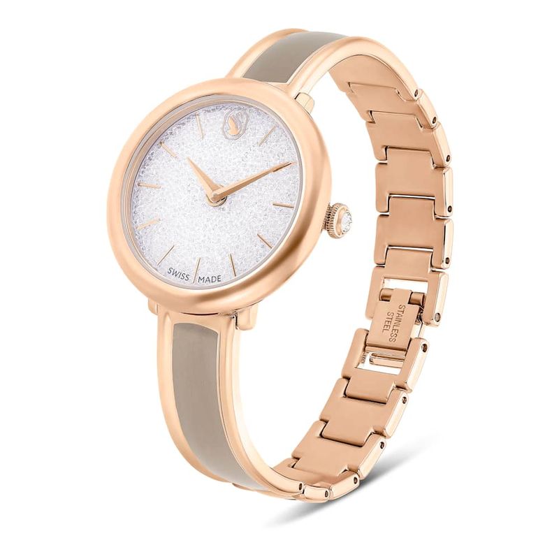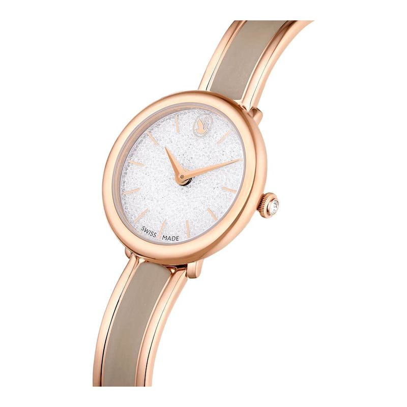 Crystalline Bangle Watch, Swiss Made, Metal Bracelet, Beige, Rose Gold-Tone Finish