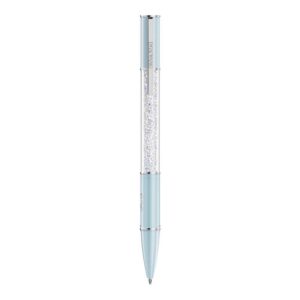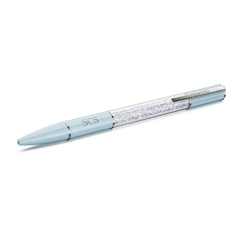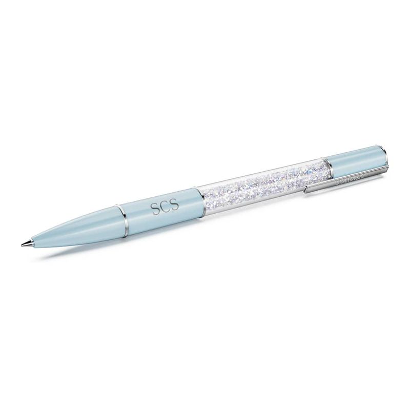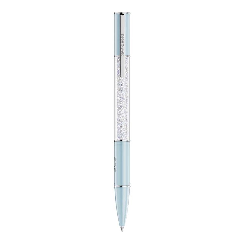 Exclusive to the SCS, this luxurious Crystalline Lustre ballpoint pen is inspired by vivid colors. The distinctive writing instrument features a round, light blue barrel, proudly adorned with the Swarovski Crystal Society logo. Chrome-plated details include a convenient clip engraved with the Swarovski name. At its center, this striking design is illuminated with approximately 480 sparkling crystals, each meticulously added using the iconic Crystalline technique. A standout addition to your desk or a distinctive gift for the writers in your life, this pen comes packaged in an exclusive case and box, both adorned with the SCS logo. Black and blue ink refills are available for purchase in Swarovski stores.