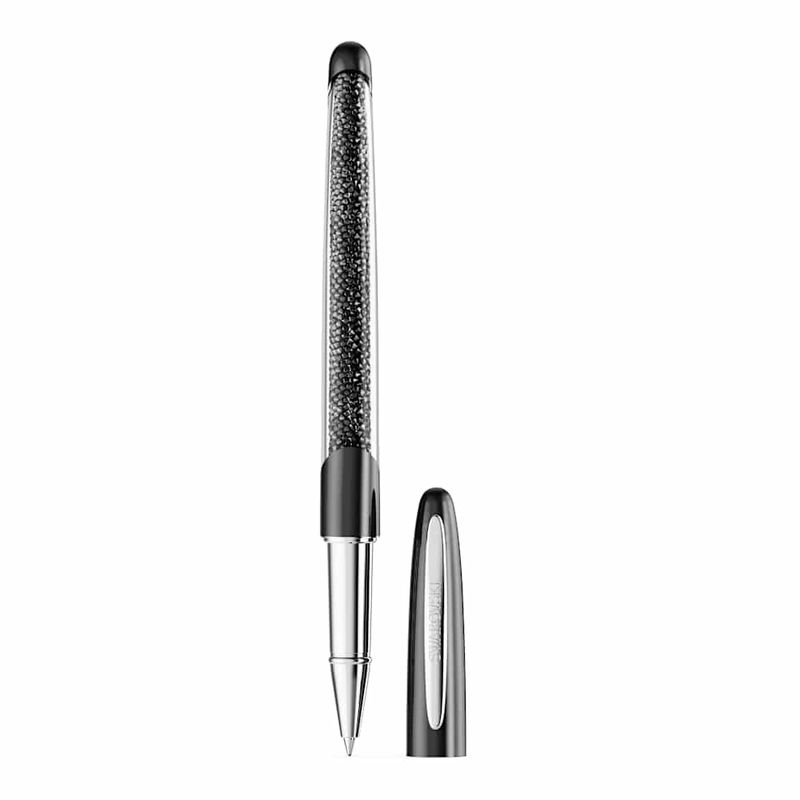 Much more than a simple writing instrument, this Crystalline Nova ballpoint pen is filled with approximately 400 black crystals using the unique Crystalline technique. A silver-tone plated clip enhances the shimmering black barrel and cap. This fine-line pen makes a thoughtful gift. Black and blue ink refills are available in Swarovski stores.