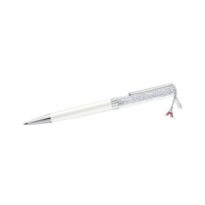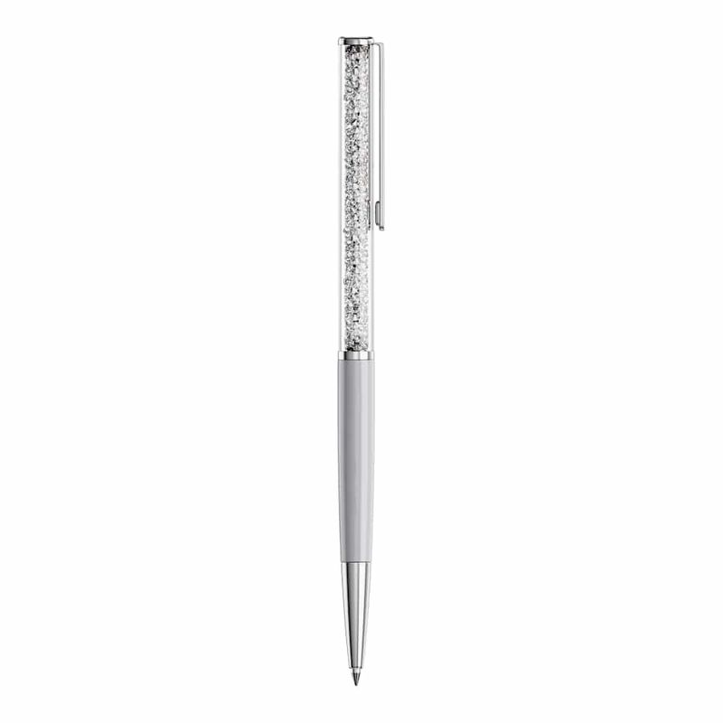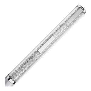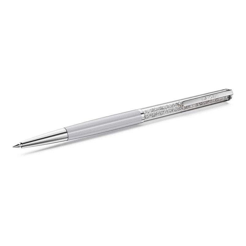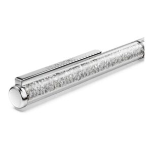 This slim ballpoint pen is a timeless accessory that offers endless creativity. Its streamlined design is filled with approximately 400 clear crystals, visible through the long, transparent window. Along with the silver-gray barrel, the pen features chrome finishes for an ultra-luxurious look. A perfect gift for yourself or that special someone who has a poetic way of expressing themselves. Black and blue ink refills are available in Swarovski stores.