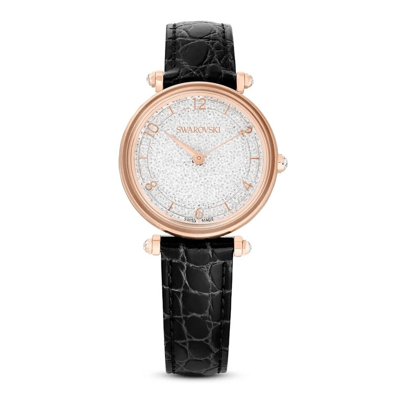 Crystalline Wonder Watch, Swiss Made, Leather Strap, Black, Rose Gold Tone SWA5653359