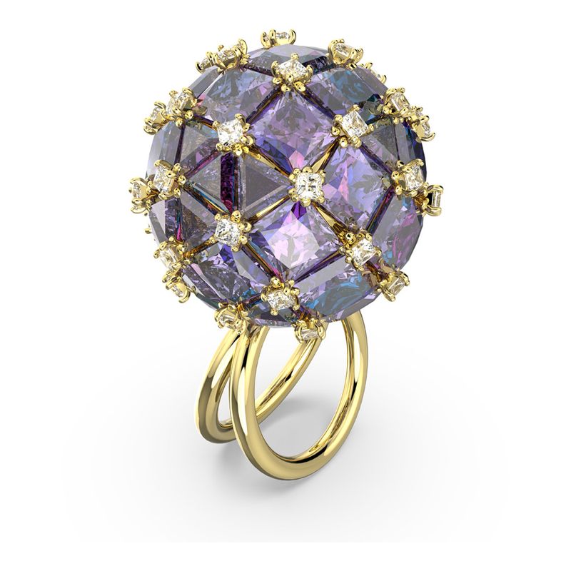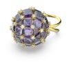 Set on a gold-plated double band, this three-dimensional sphere creates new perspectives of color from every angle. Crafted from princess-cut blue stones, its “bichromatic” quality is offset by intricate embellishments of clear stones. Wear this striking ring alone or layer it with other dazzling pieces from the Curiosa family. Part of the Curiosa family, this ring was designed by Creative Director Giovanna Engelbert for Collection I.