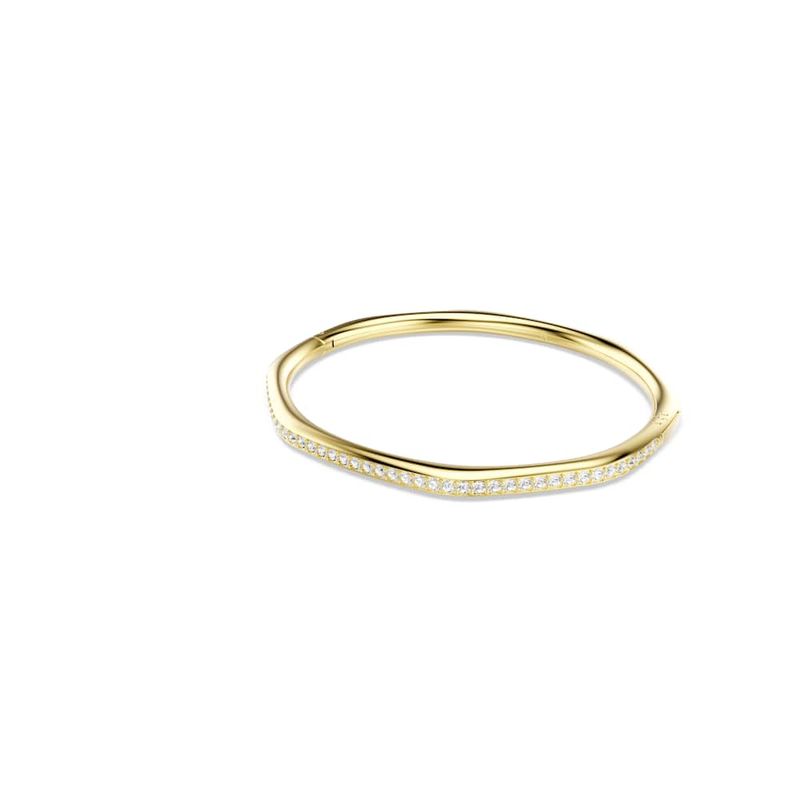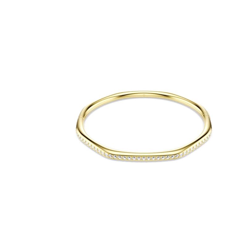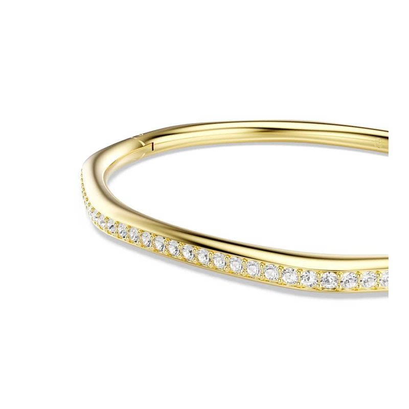 One of Swarovski’s most popular styles, this Dextera bracelet makes a chic statement. Featuring a slender octagonal design, this gold-tone plated piece is enhanced with a row of precision-cut crystals in a refined claw setting. Wear it alone or layer it with other bracelets to enhance its sparkle.