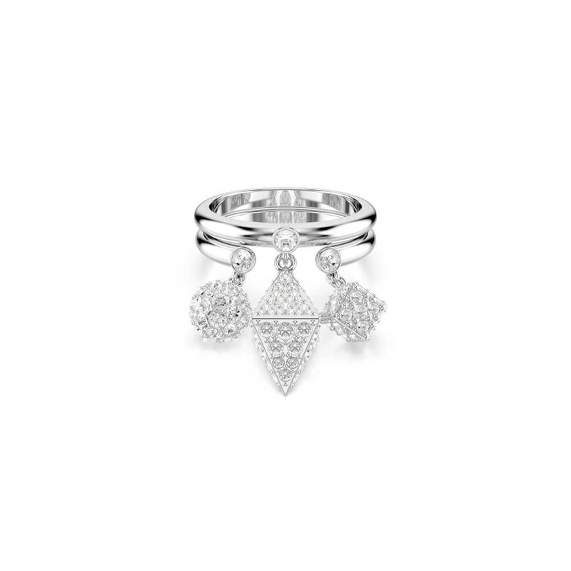Dextera Ring, Set (2), Sphere and Cube, White, Rhodium Plated
