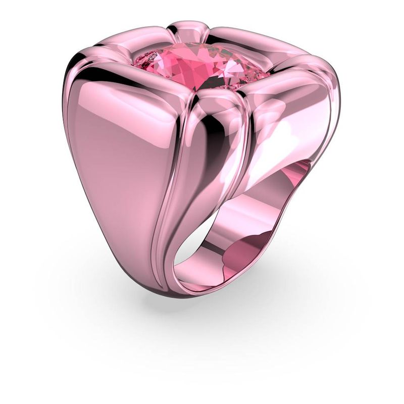 This pink crystal cocktail ring is an ingenious illusion: skillfully sculpted to resemble a sweet, fudge candy, the cushion-cut center stone is set in iridescent pink metal. A tonal inner band lets you comfortably fit it on your finger. Wear it as a standalone Pop Art piece or layer it with other pieces to create a stunning pop of color. Designed by Creative Director Giovanna Engelbert for Collection I, this ring is part of the Dulcis family.