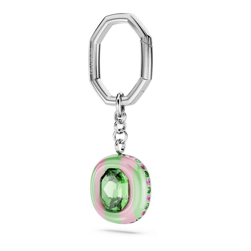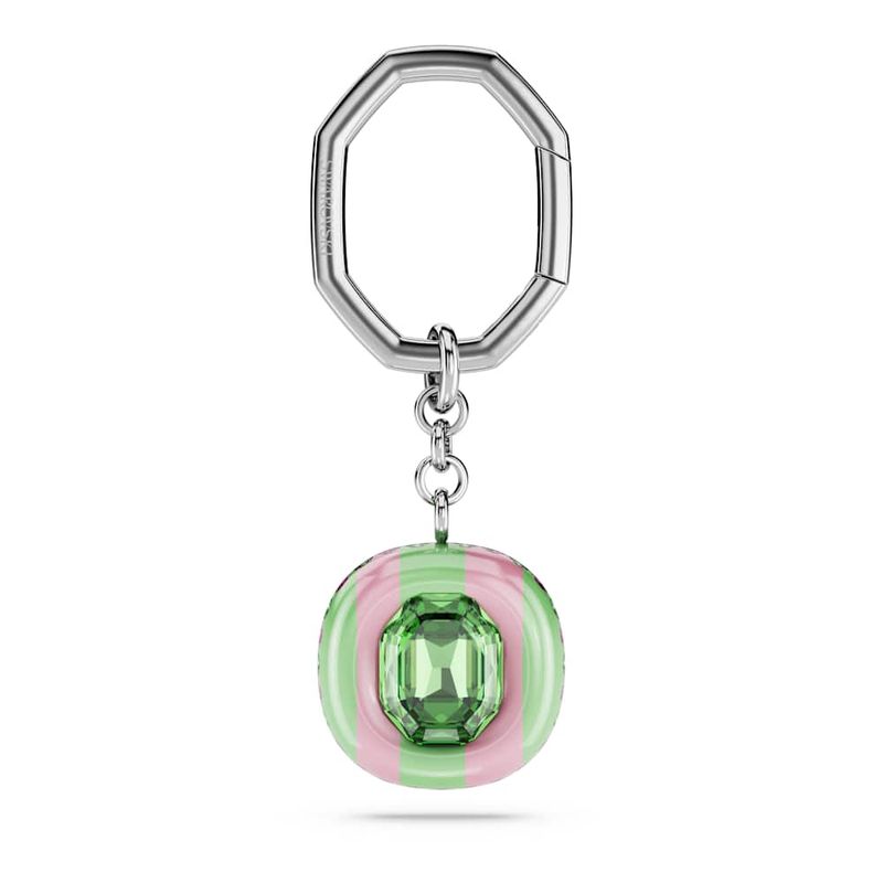 Inspired by the Dulcis family, this colorful candy-inspired keychain is crafted to add cheer to any style. Attached to a rhodium-plated link, the cushion-shaped motif is embellished with playful stripes, a central octagonal crystal, and more green and pink crystals around the edges. It’s ideal for complementing your own Dulcis accessories or the perfect gift to brighten someone’s birthday.