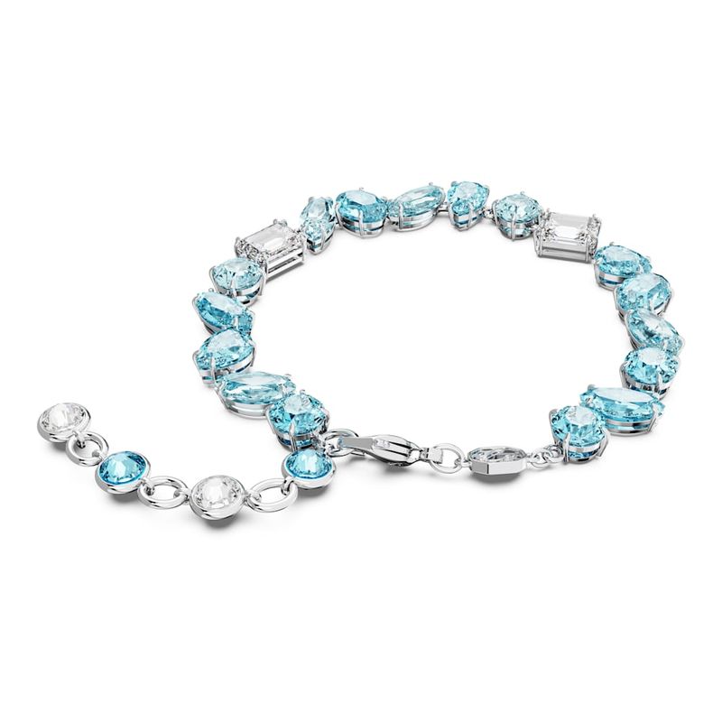 Gem Bracelet, Mixed Sizes, Blue, Rhodium Plated