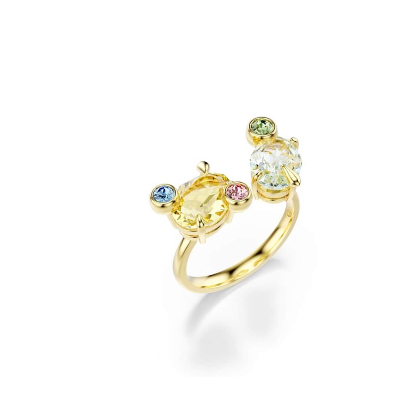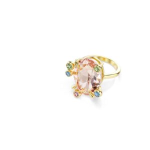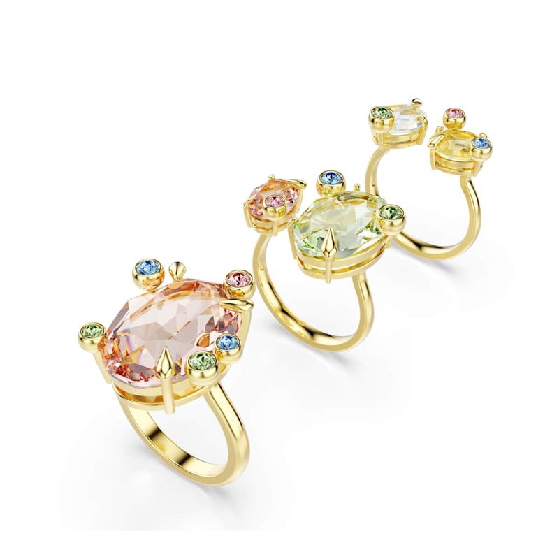 Be captivated by the abundance of crystals in this energetic accessory set. This unexpected combination includes two open rings and one closed ring, each adorned with large crystals in multiple hues and smaller crystals in a playful bubble-shaped claw setting. Wear the entire set to make a bold and colorful style statement that will brighten your look and your day.