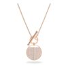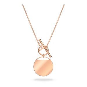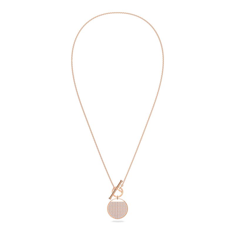 This Swarovski necklace is the latest trend. It closes in the front with a stylish T-bar clasp, while its center piece can be rotated to create two different styles. It’s adorned with a clear crystal pavé-covered coin on one side. Ideal for accessorizing casual everyday looks and great for creating on-trend layered looks with other accessories.