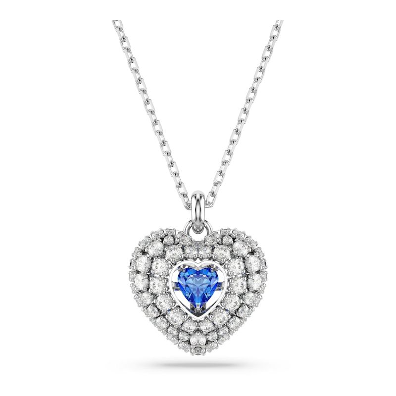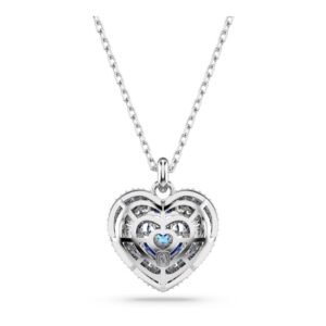 Two hearts become one in this romantic Swarovski pendant. The rhodium-plated motif is created in a cage design for maximum volume. To enhance the domed effect, it’s adorned with round clear Swarovski Zirconia set using the dazzling chatonnage technique, while at its center, a blue heart-shaped Dancing Stone catches the light from every angle. A perfect way to say “I love you” to someone special.