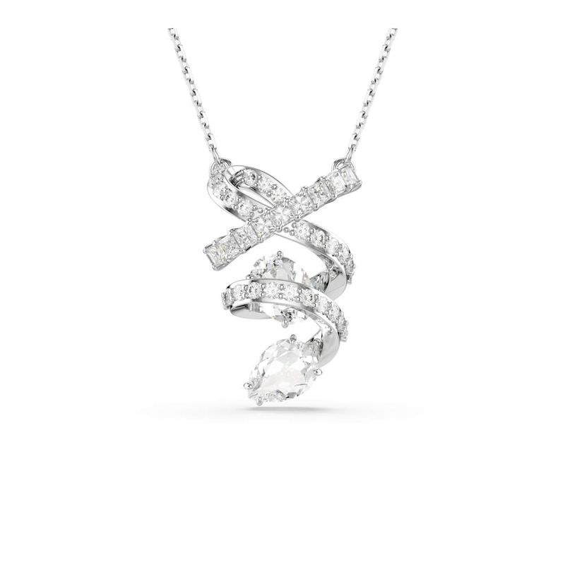 With its intricate spiral radiating light, this Hyperbola pendant is a marvel. This rhodium-plated accessory hangs from an elegant chain and features a cascading twist of clear Swarovski Zirconias and crystals in various settings. A brilliant example of Swarovski’s expertise that enhances the beauty of complexity.