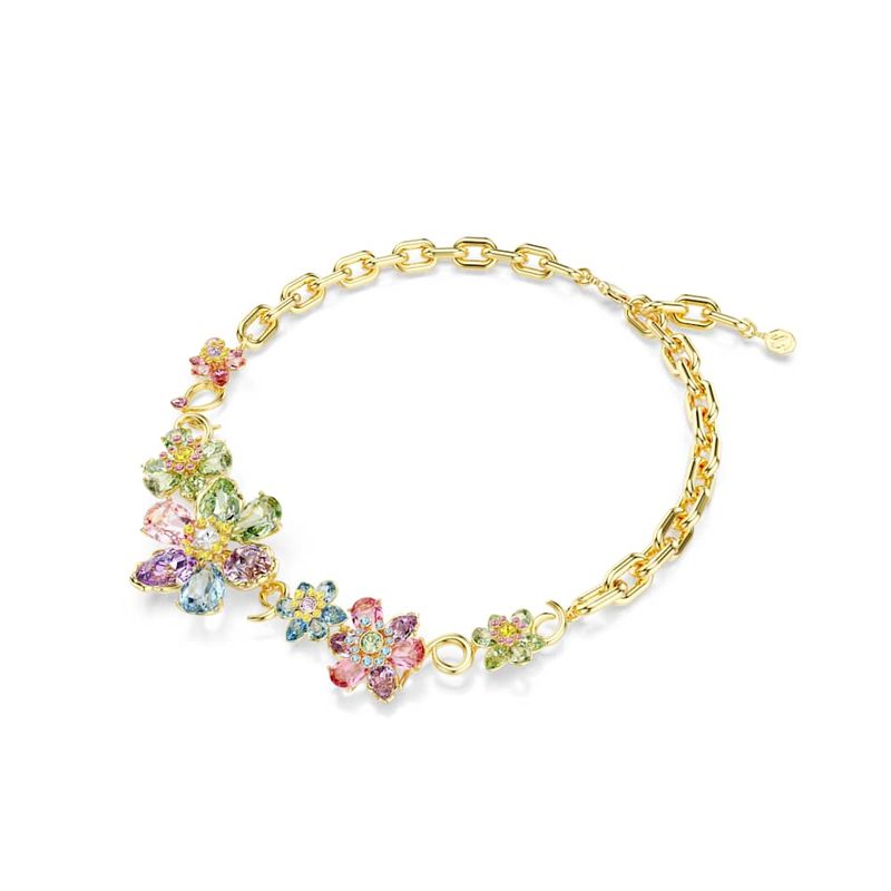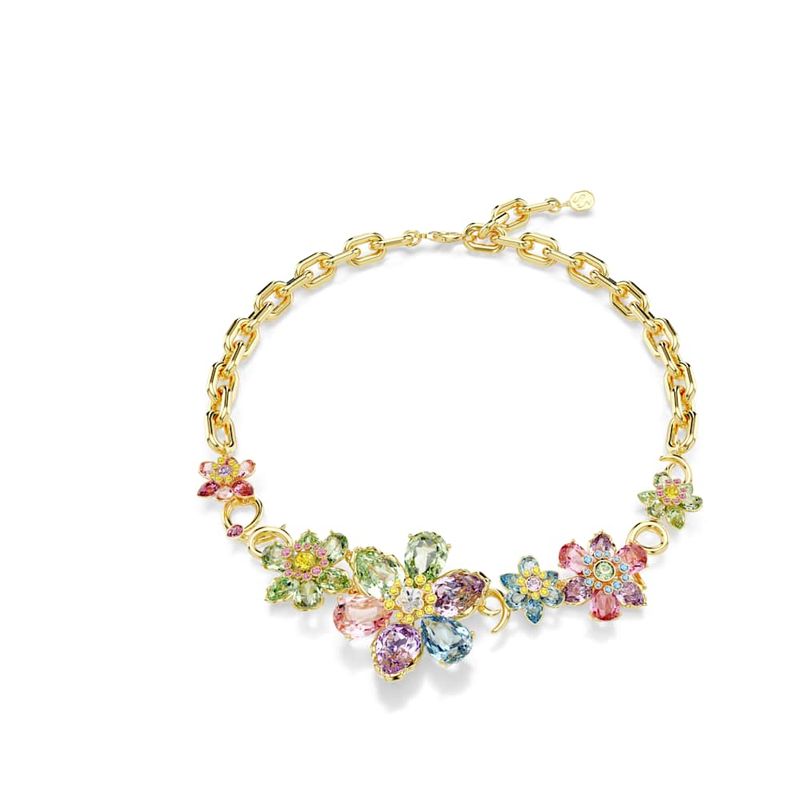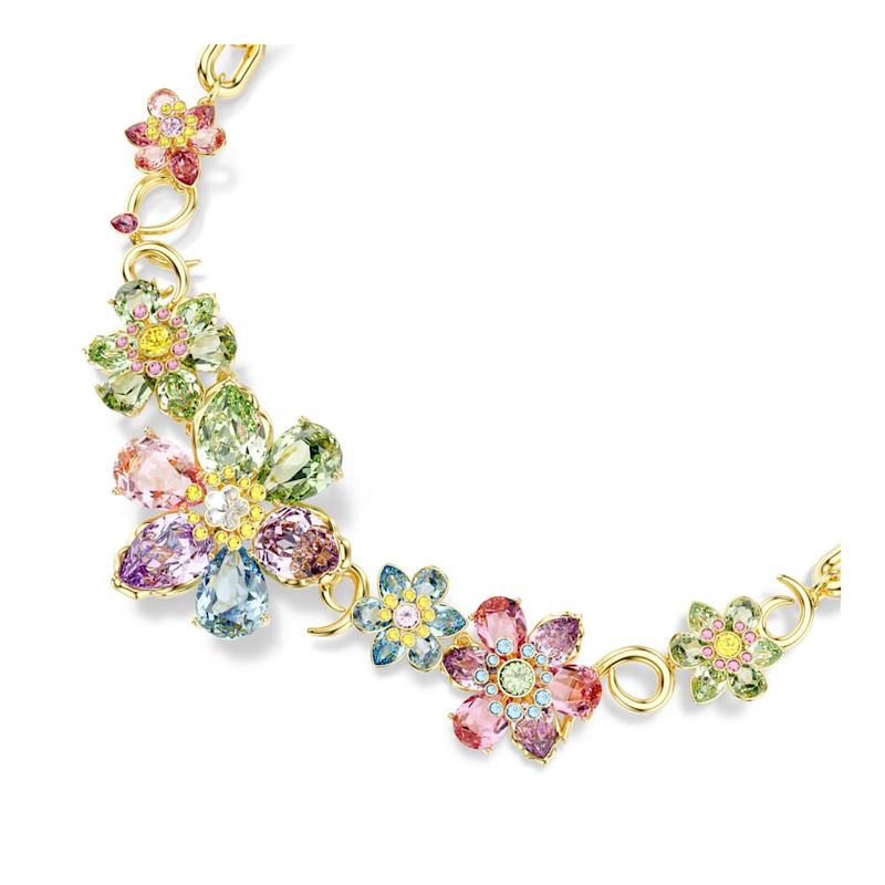 This captivating Idyllia necklace will elevate any outfit with joy and radiant color. This all-over design features a gold-tone plated chain with a vivid array of flowers, each created with crystals of varying shapes and hues. Swarovski’s expertise is evident in every petal, resulting in a playful yet luxurious accessory. This necklace would make a stunning gift for a loved one on a very special occasion.