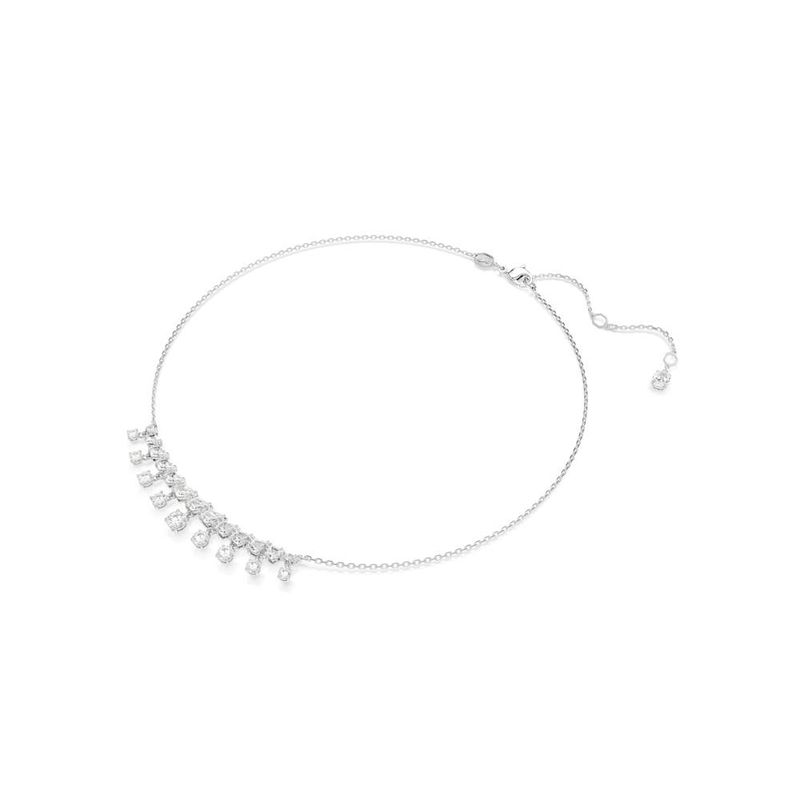 Brighten up any look with this radiant, ice-inspired necklace. The rhodium-plated design features a gradient of clear, kite-cut Swarovski Zirconias, each adorned with a round-cut Swarovski Zirconia dangling below. Completed with a lobster clasp, this wintery piece is a perfect example of Swarovski’s precision cutting and mastery of light. Wear it alongside a pair of snowflake earrings from the same Idyllia family.
