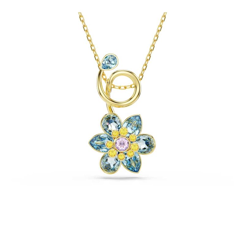 Illuminate your style with this crystallized tribute to nature. The central motif, suspended from a delicate chain, is shaped like a flower and features radiant blue petals and a gold-tone plated stem. The mix of shapes and tones gives this Idyllia pendant a burst of joy that will lift your spirits all day long.