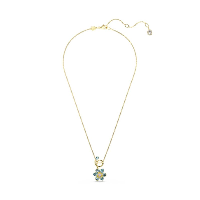 Idyllia Pendant, Mixed Sizes, Flower, Blue, Gold-Tone Plated