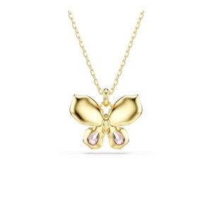 Let your style soar with this delicate butterfly pendant. The magical design is worn on a gold-tone plated chain and features a central motif decorated with crystals of different shapes and colors. This striking creation is a fantastic example of the wonders to be found in the beautiful Idyllia Garden, and is an accessory as joyful as it is luxurious.