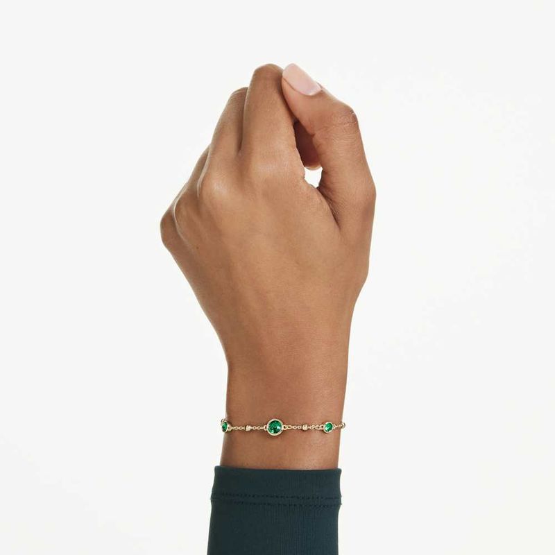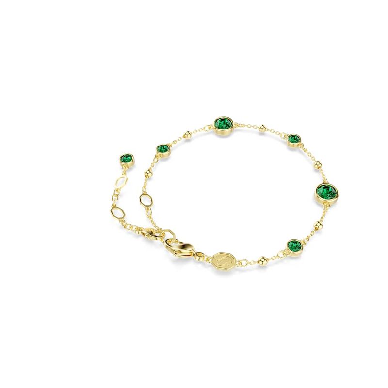 Imber Bracelet, Round Cut, Green, Gold-Tone Plated