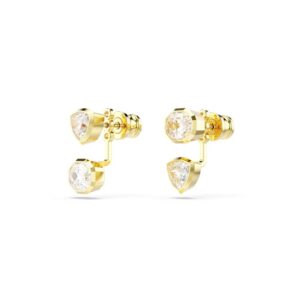 Imber ear jacket earrings, Asymmetric design, Mixed sizes, White, Gold-tone plated