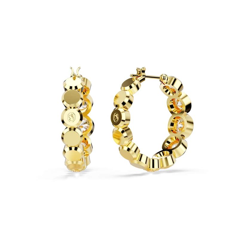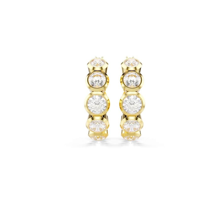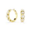Maximise your elegance with these sparkling mini hoops. The gold-tone plated pieces are masterfully crafted with a circle of round-cut Swarovski Zirconia, each bezel-set with a modern gradient design. A perfect pair for everyday sophistication or a brilliant choice for evening glamour.