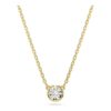 Go for a stylish yet effortless look with this radiant Imber pendant. This gold-tone coated design comes on a delicate chain with a lobster clasp and features a central round crystal in a domed bezel setting. A single Swarovski Zirconia has also been placed on the extension for an extra touch of luxury. Wear this piece as the finishing touch to a refined look.