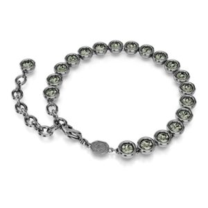 This eye-catching Imber Tennis bracelet combines rich hues with expert faceting. This ruthenium-coated design features a full strand of round-cut black crystals in a domed bezel setting and is completed with a lobster clasp closure. A great choice for casual style or to elevate an evening look.