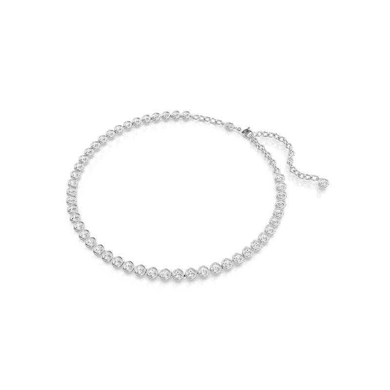 Imber Tennis Necklace, Round Cut, White, Rhodium Plated