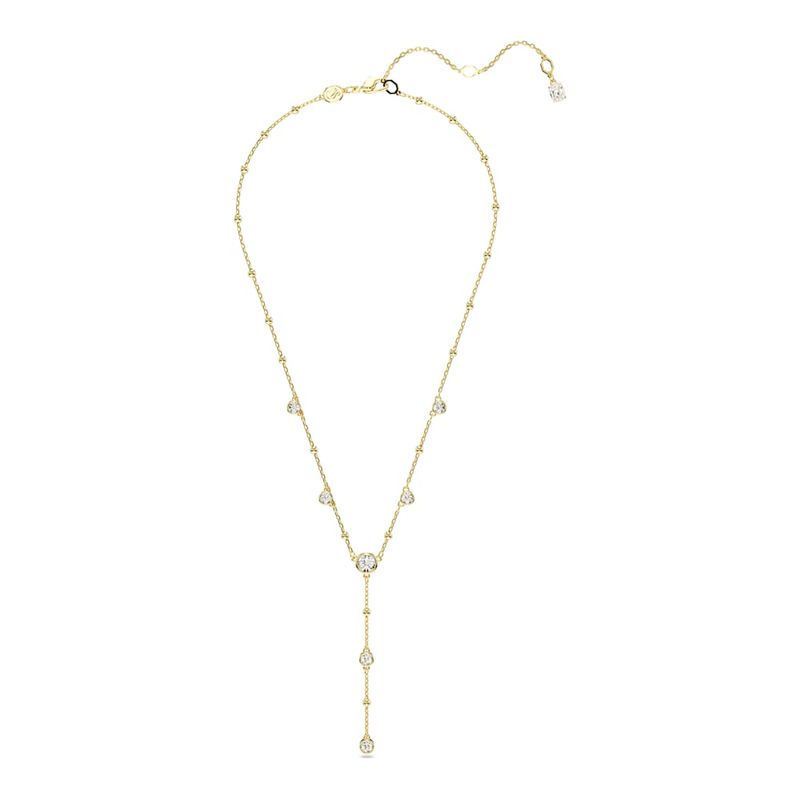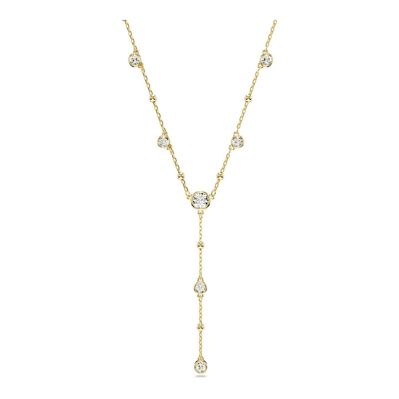 Imber Y-Necklace, Round Cut, Distributed Design, White, Gold-Tone Plated